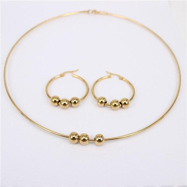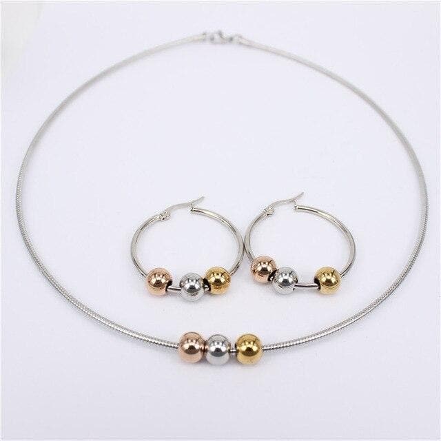MGUB Cool and comfortable Set stainless steel Smooth and beautiful beads 2mm collar 30mm-70mm earring Multiple style options