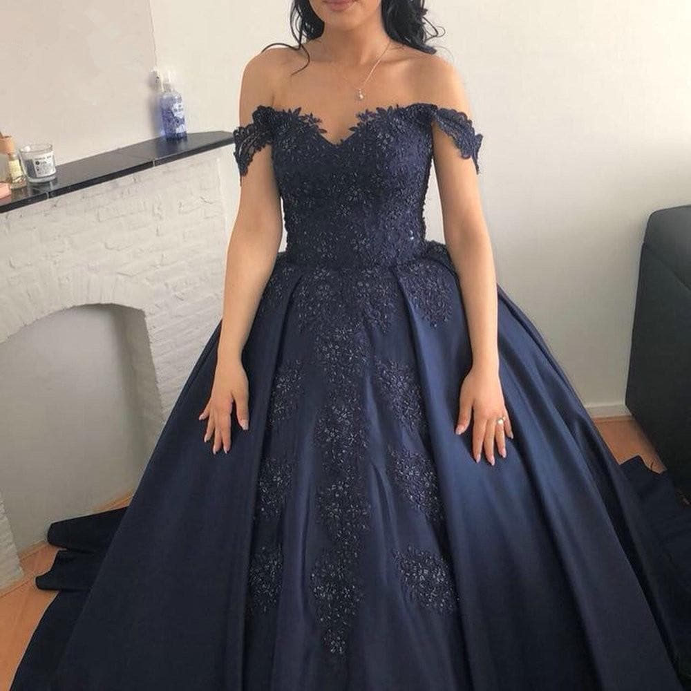 Off Shoulder Lace Applique Navy Blue Wedding Dress Turkey wedding Gown Vestido De Noiva