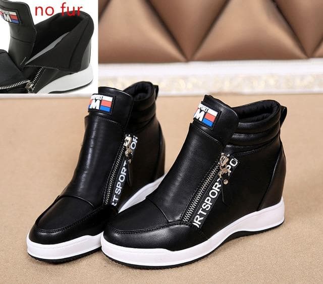 SWYIVY Winter Fur Sneakers Platform Woman Autumn High Top Female Casual Shoes Wedge Side Zipper Fashion Warm Snow Sneakers