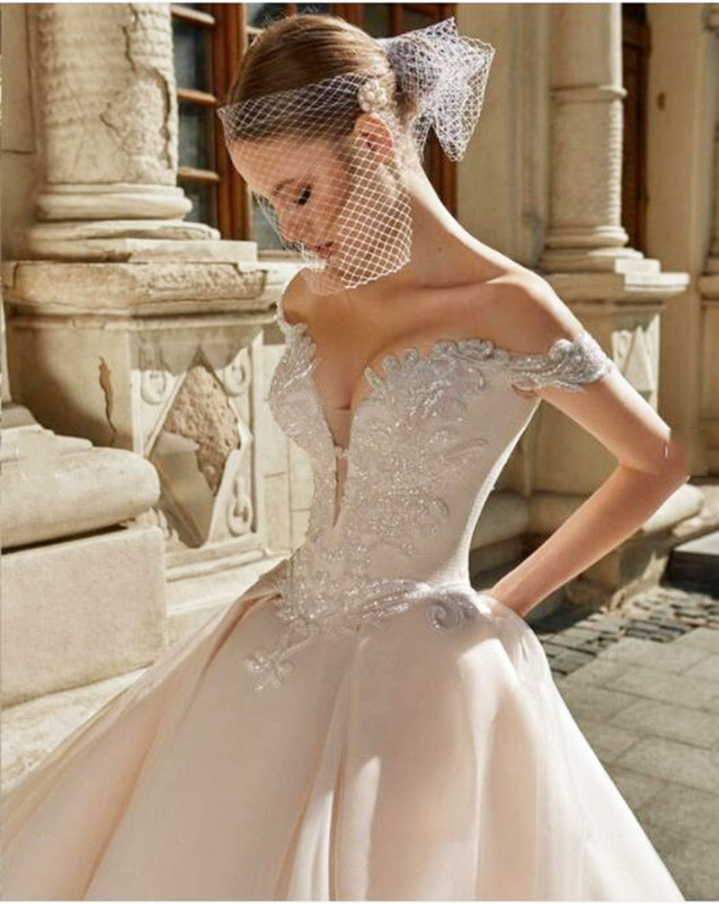 Very Beautiful Wedding Dresses 2021 Women Off Shoulder Tulle Half Sleeves Corset Wedding Dress Aline Bride Gown